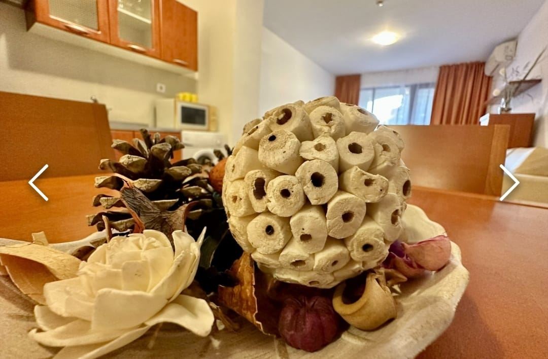 Квартира состоит из светлой и просторной гостиной зоны, идеальной для отдыха и развлечений, удобной спальни, стильной ванной комнаты и балкона, с которого открывается возможность насладиться свежим морским воздухом и красивыми видами на окрестности. Каждое помещение наполнено естественным светом, а тщательно подобранный интерьер создаёт ощущение тепла и элегантности.