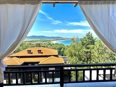 Просторная квартира с одной спальней с панорамным видом на море и большой террасой в элитном комплексе в Созополе