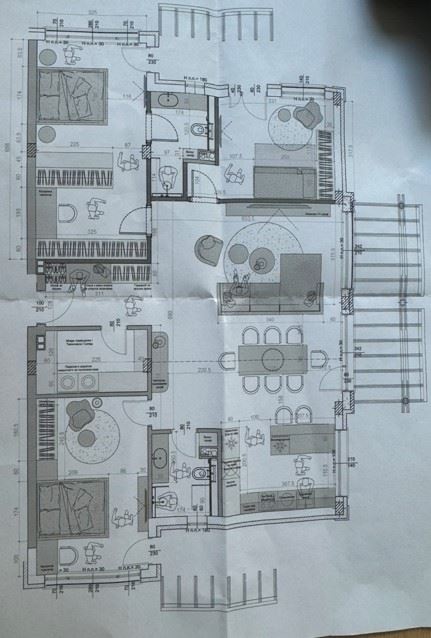 Квартира располагает тремя спальнями, две из которых просторные и уютные, а третья более компактная – идеально подходит для детской комнаты, кабинета или гостевой. Хорошо обособленная зона отдыха позволяет каждому члену семьи иметь своё личное пространство. Квартира оснащена двумя отдельными ванными комнатами с туалетами, что обеспечивает максимальный комфорт в ежедневието, а также практичным подсобным помещением, идеально подходящим для стиральной машины, сушилки и хранения.