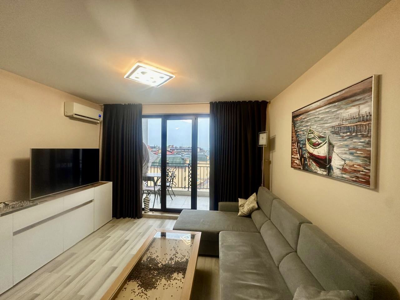 Просторная трёхкомнатная квартира с впечатляющей морской панорамой в комплексе в Несебре