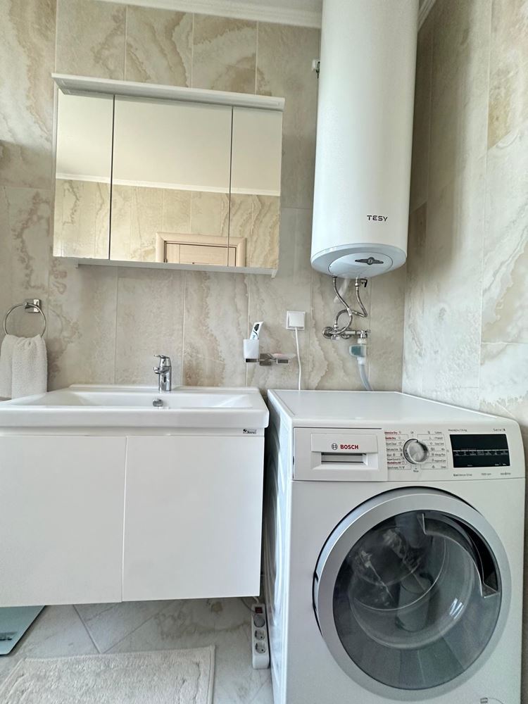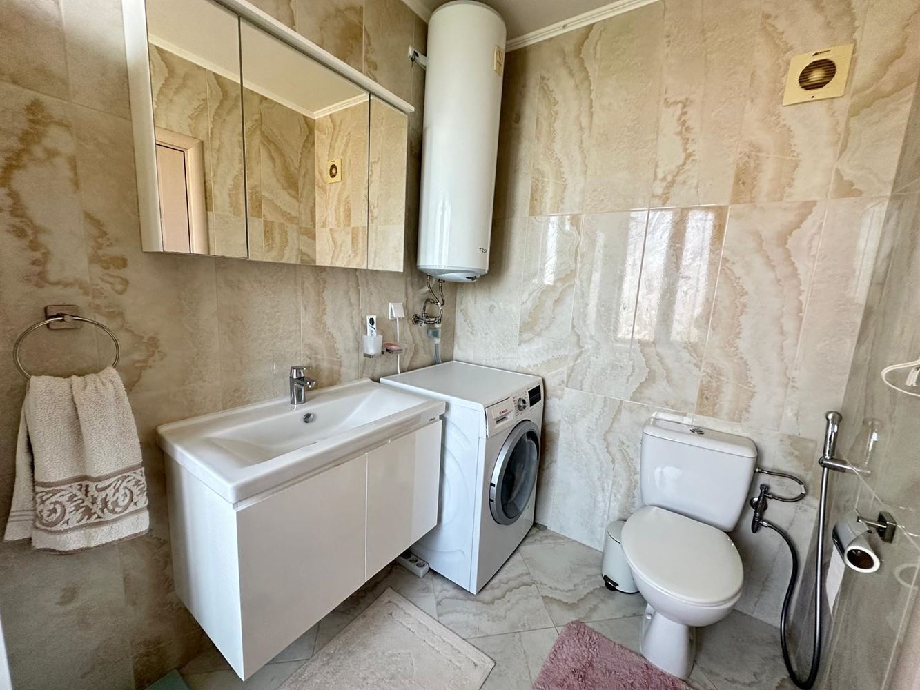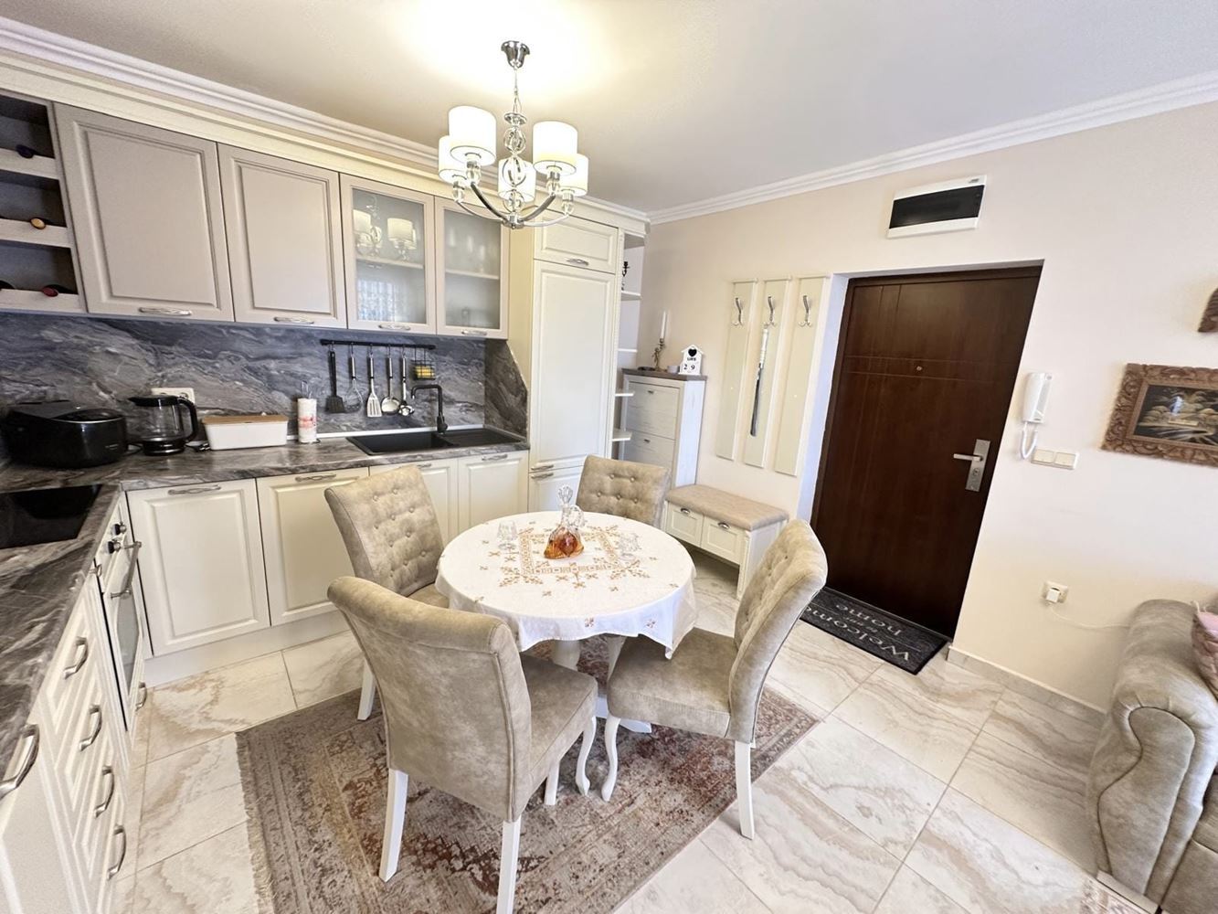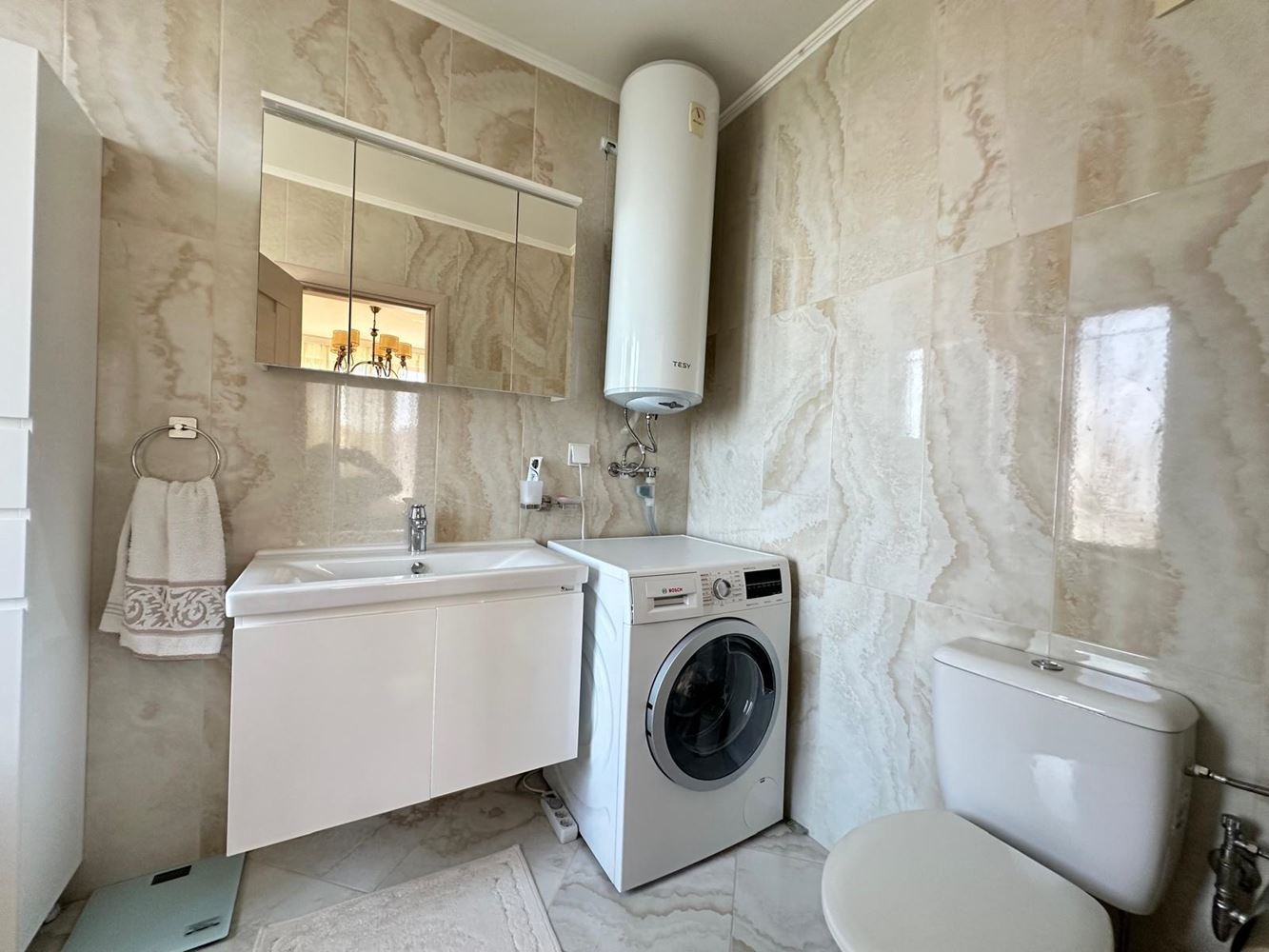 Квартира впечатляет функциональной планировкой и уютной обстановкой. Просторная гостиная идеально подходит для отдыха и семейных моментов, а полностью оборудованная кухня готова к вашим кулинарным идеям. Две светлые и комфортные спальни обеспечивают спокойствие и уединение, подойдут как для семьи, так и для гостей. В квартире две современные ванные комнаты — одна с ванной и прекрасным видом на море, другая с удобной душевой кабиной. Обе террасы открывают очаровательный вид на море, идеально подходящий для утреннего кофе или романтических вечеров.