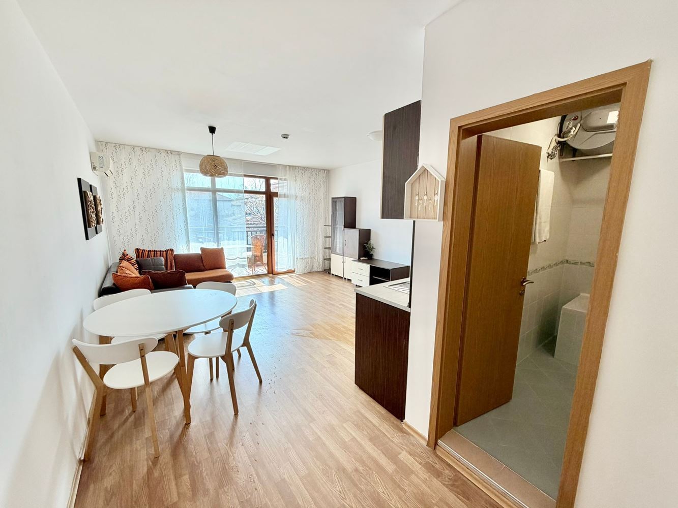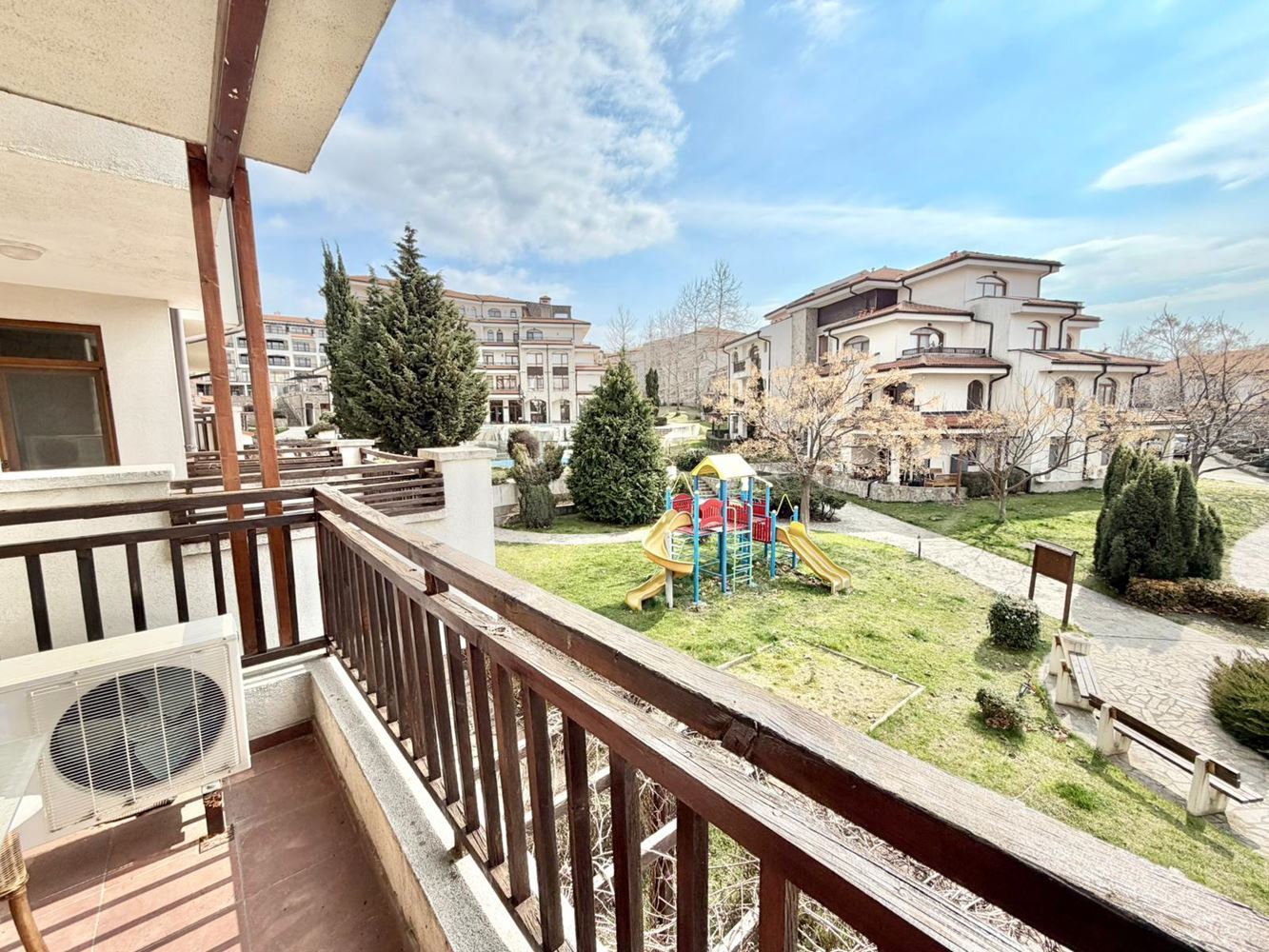 Комплекс предлагает спа-удобства и все необходимые услуги для полноценного проживания и отдыха, включая бассейн, зеленые зоны и места для релаксации. Расположение в Ахелое обеспечивает спокойствие, свежий воздух и легкий доступ к пляжу и инфраструктуре города.