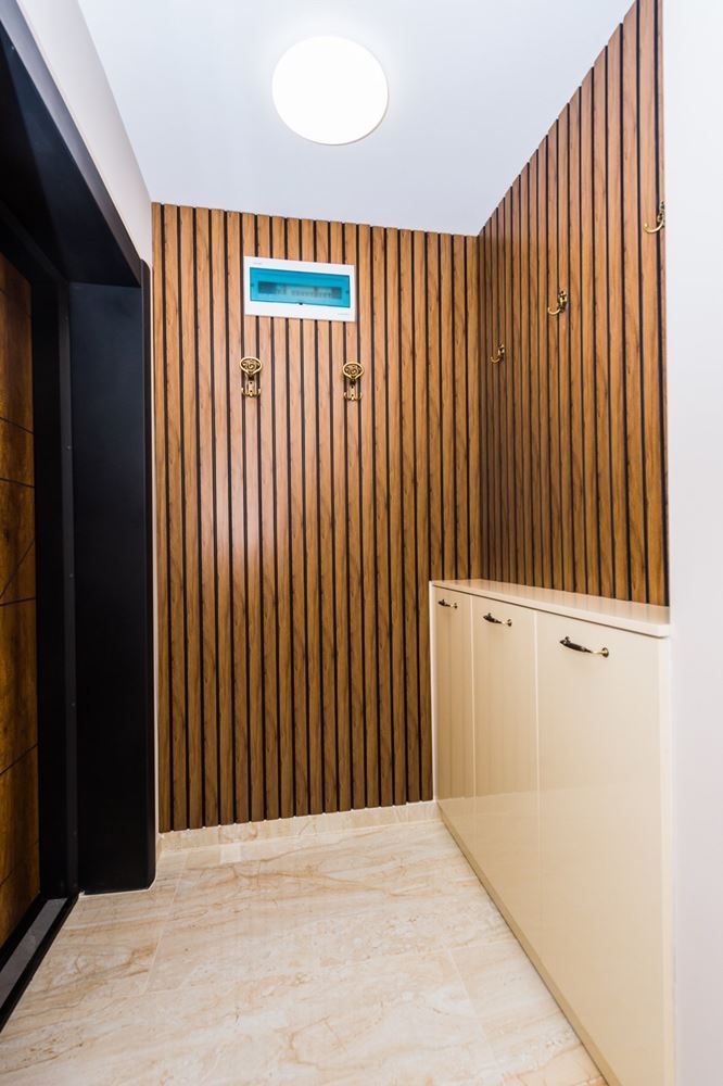Квартира полностью отремонтирована и оснащена высококачественной звуко- и теплоизоляцией, что гарантирует максимальный комфорт. Общая площадь 69,25 м², включает спальню, просторную гостиную с кухней и санузел. Интерьер современный и функциональный, с первоклассной бытовой техникой, новой оконной системой и наружными рольставнями, что делает квартиру готовой к заселению сразу. Имеется два отдельных входа, обеспечивающие дополнительное удобство и гибкость использования.