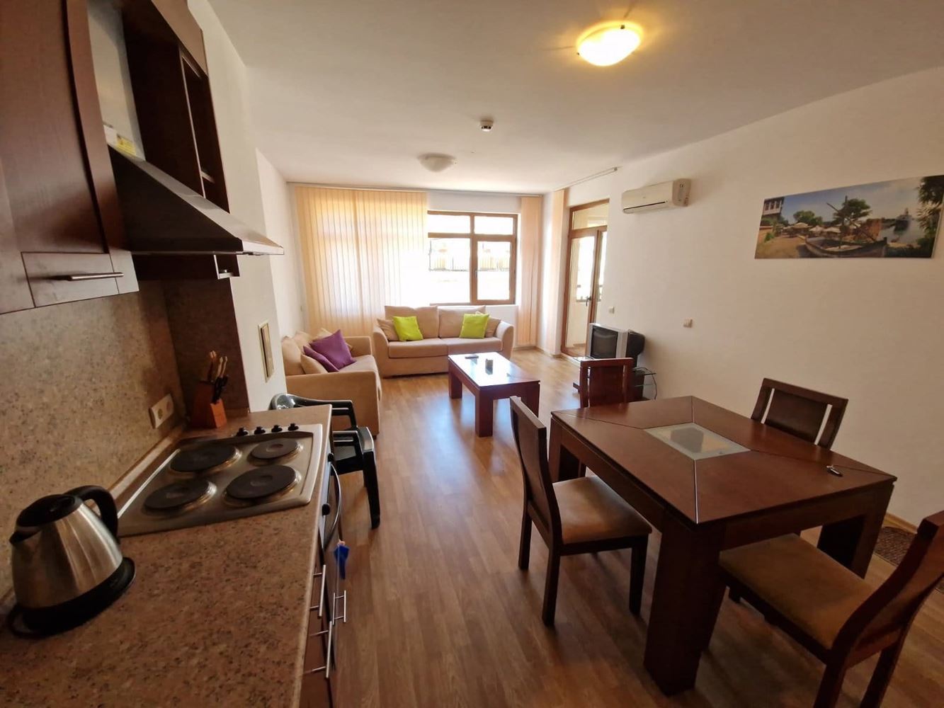 Предлагаем к продаже однокомнатную квартиру площадью 75 м², расположенную на первом жилом этаже над партером в престижном SPA-отеле в Ахелой. Квартира впечатляет функциональной планировкой и уютной атмосферой, созданной для комфортной жизни или полноценного отдыха. В квартире есть просторная гостиная с кухонным уголком, одна спальня, ванная комната с туалетом и большая терраса, которая становится естественным продолжением жилья – идеальное место для утреннего кофе, вечерних разговоров или отдыха с видом на зелень и спокойствие. Терраса является значительным акцентом недвижимости и добавляет дополнительную ценность как для личного использования, так и для сдачи в аренду.