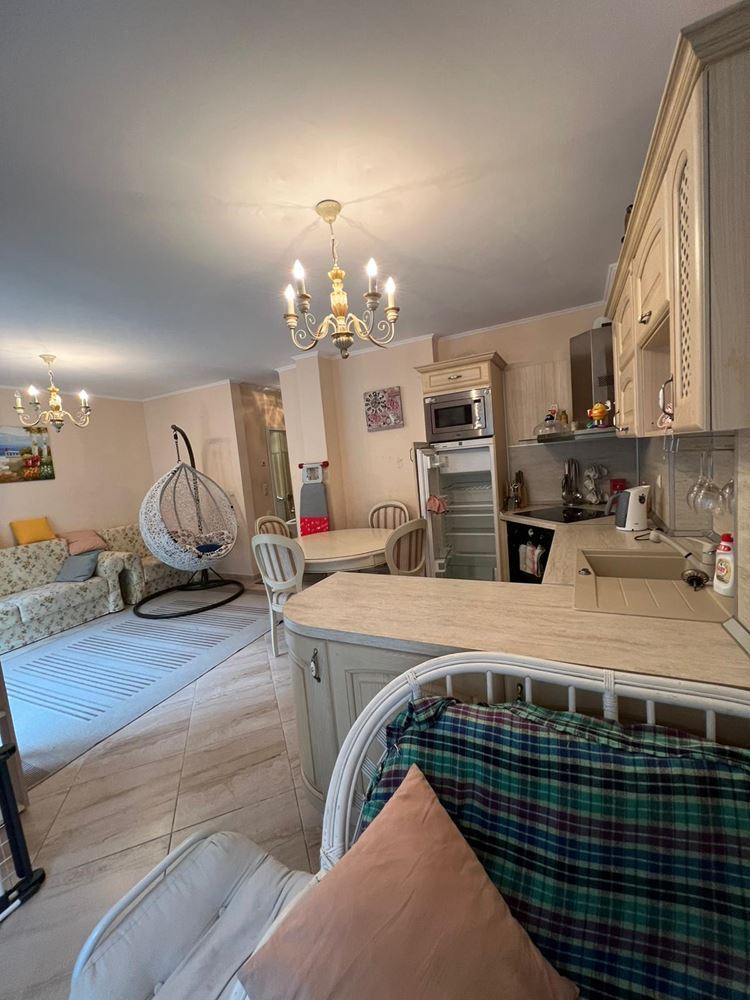 Представляем вашему вниманию исключительный роскошный мезонет площадью 92 м², расположенный на первом и цокольном этажах, который сочетает стиль, функциональность и прямой доступ к личной садовой зоне. Этот объект идеально подходит для тех, кто ищет сочетание удобства, комфорта и спокойствия, одновременно наслаждаясь всеми преимуществами престижного комплекса в тихом, зелёном районе, всего в 7 минутах от моря. Мезонет полностью меблирован и предлагает уютное распределение пространства, подходящее как для постоянного проживания, так и для сезонного использования. Собственный сад создаёт ощущение свободы и приватности, позволяя отдыхать на свежем воздухе и проводить приятные вечера с семьёй или друзьями.
