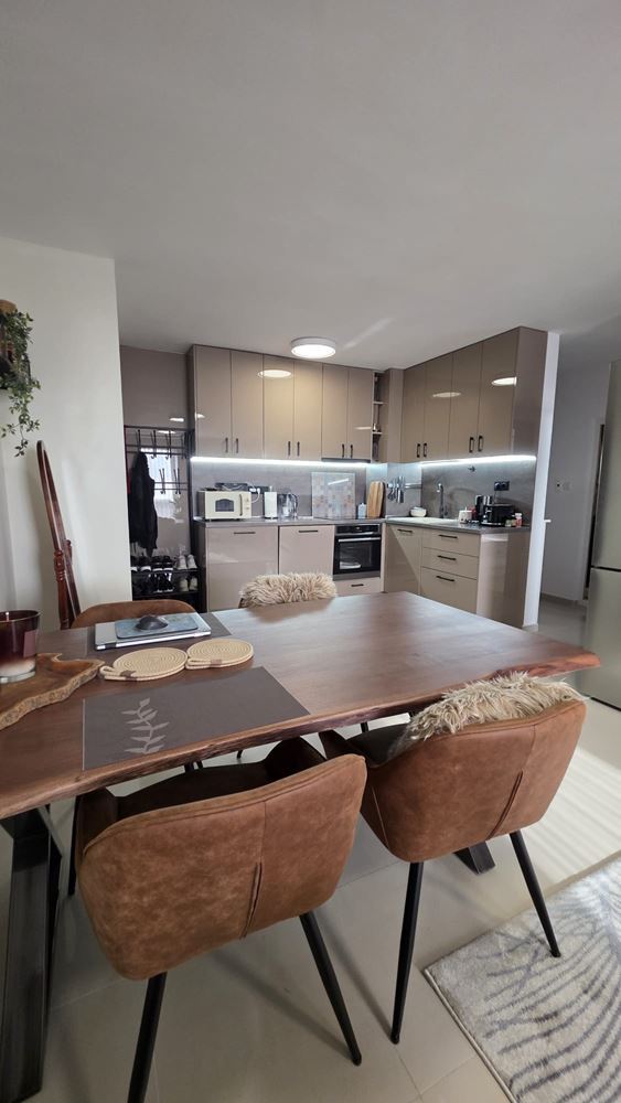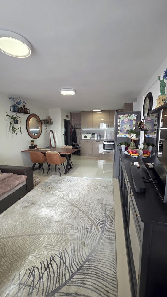 Квартира построена из качественных материалов – без гипсокартона, что обеспечивает тепло и прочность. Пространство рационально распределено: гостиная с кухонной зоной, две спальни, две закрытые террасы с прямым видом на море и горы, ванная комната с туалетом. Светлая и просторная атмосфера вместе с удобной планировкой создаёт ощущение уюта и комфорта.
