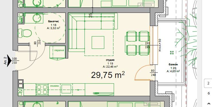 Недвижимость расположена на первом этаже и имеет общую площадь 34,69 м². Функциональная планировка обеспечивает удобное одно помещение с местом для кухонного блока, зоной отдыха и сна, выходом на балкон, а также отдельной ванной/туалетом. Студия получает приятный естественный свет и создаёт ощущение уюта и практичности в повседневной жизни. Жильё сдаётся «под ключ» – готово для меблировки. Это включает готовые напольные покрытия, оштукатуренные и окрашенные стены, установленные межкомнатные двери, а также полностью завершённую и оборудованную ванную комнату. Предусмотрены выводы для кухонного блока и бытовой техники, что позволяет быстро и легко обставить квартиру по вашему вкусу.