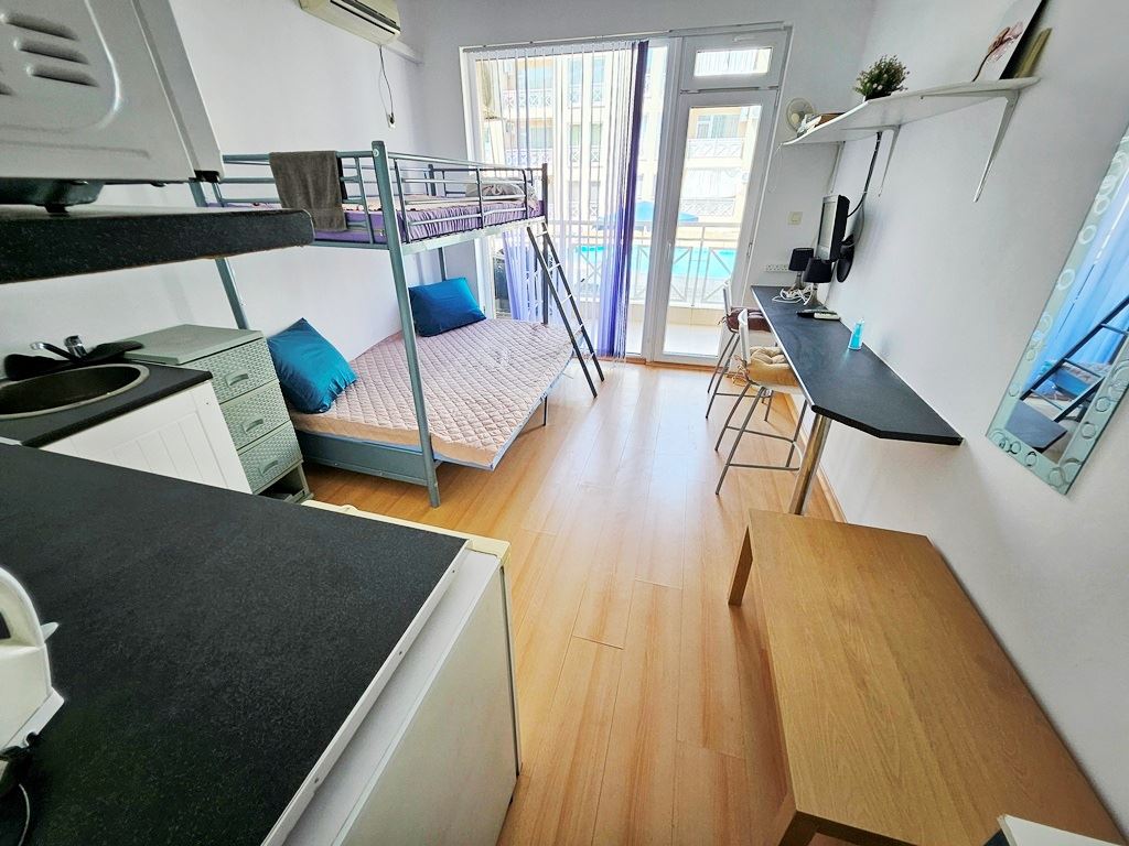 Солнечная студия с видом на бассейн в районе Солнечного берега – идеально для отдыха и инвестиций