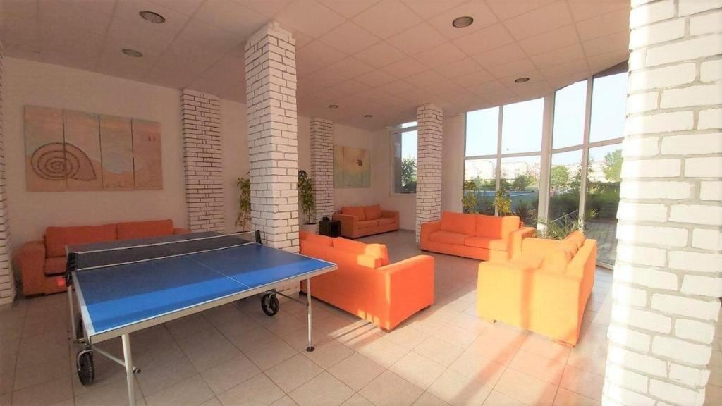 Комплекс предлагает необходимые удобства для жильцов. Он находится всего в 400 метрах от популярных пляжей, что делает его идеальным местом для любителей морского отдыха. Комплекс располагает охраняемым бассейном с зоной отдыха, магазином, парковкой и спортивной площадкой, предоставляя жильцам все условия для комфортной жизни и отдыха. Для семей с детьми есть дополнительные удобства, такие как детский бассейн и детская площадка.