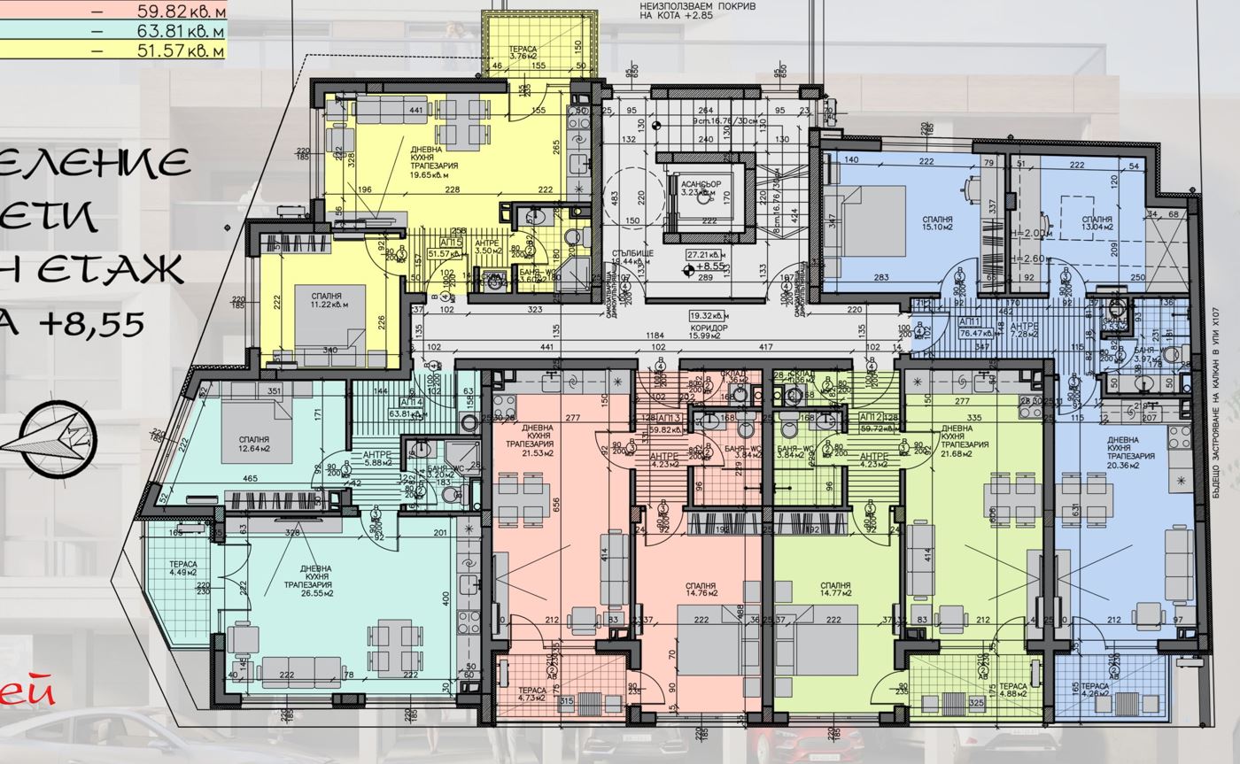 Представляем современную двухкомнатную квартиру площадью 71.42 m², расположенную на четвёртом этаже современного жилого здания в престижном районе Зорница города Бургас. Недвижимость является частью нового современного проекта, созданного с учётом удобства будущих владельцев и сочетающего современный дизайн, функциональность и стратегическое расположение.