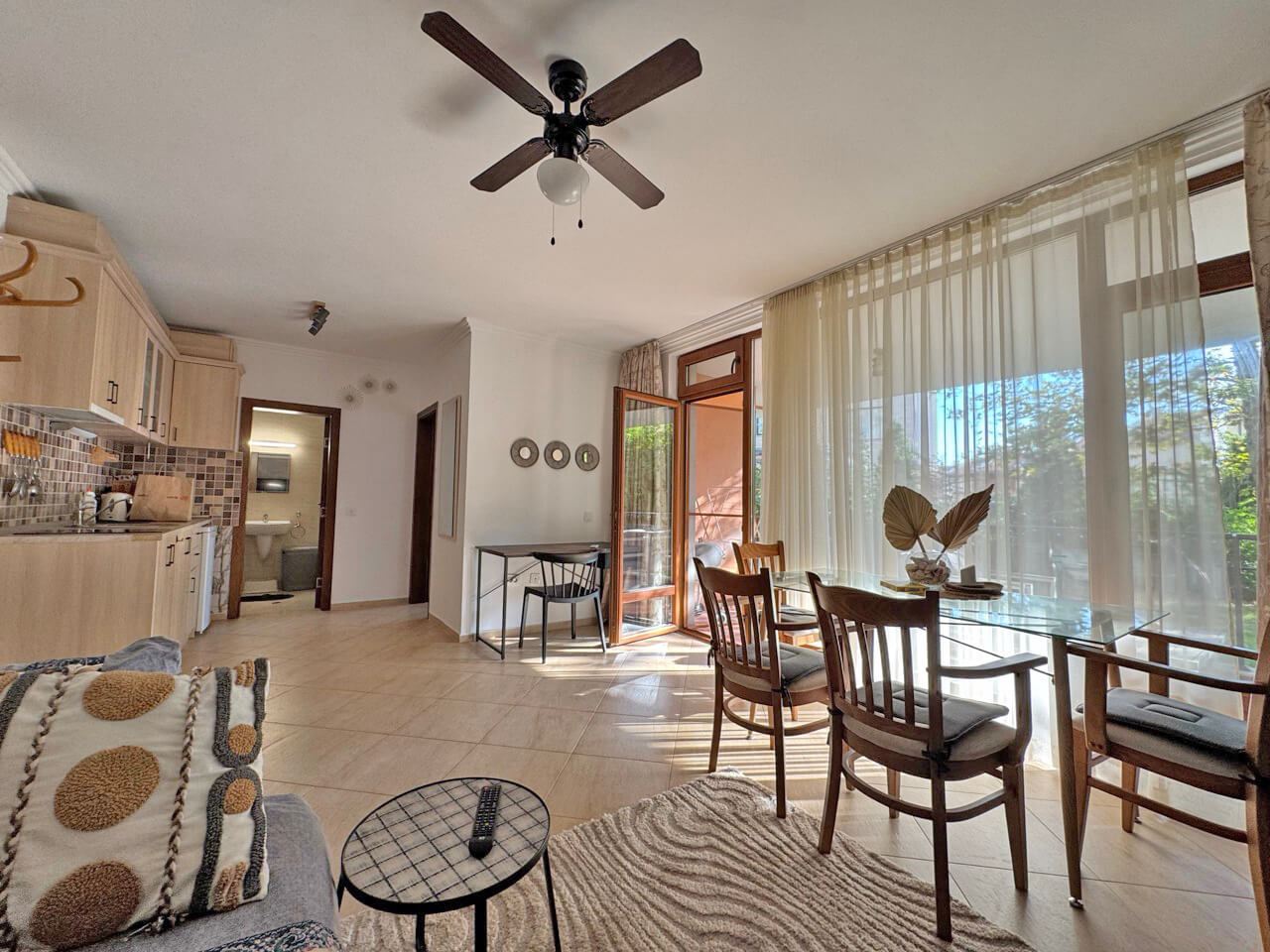Предлагаем уютную, полностью меблированную двухкомнатную квартиру площадью 66 м², расположенную на первом этаже одного из самых популярных комплексов в Святом Власе. Квартира полностью готова к заселению – современная мебель и продуманный интерьер создают атмосферу уюта и комфорта, а большие окна обеспечивают естественное освещение в течение всего дня. Планировка функциональна и удобна: просторная гостиная с кухней и обеденной зоной, отдельная спальня, современная ванная комната с туалетом и терраса с прямым выходом в ухоженный сад комплекса. Идеально подходит как для постоянного проживания, так и для отдыха или сдачи в аренду.