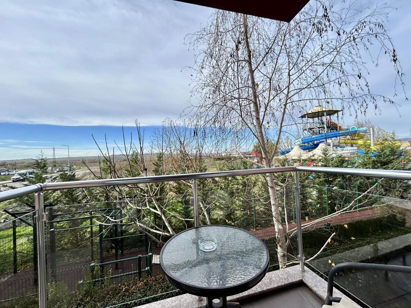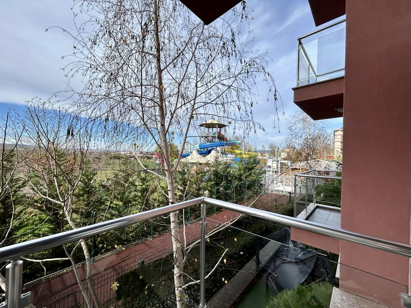Квартира очень светлая, с большими окнами, которые обеспечивают обилие естественного света и открывают красивый вид на зеленые и ухоженные территории комплекса. Пространство организовано практично, создавая ощущение уютa и комфорта, а спокойная обстановка делает квартиру идеальным местом для отдыха после долгого дня у моря.