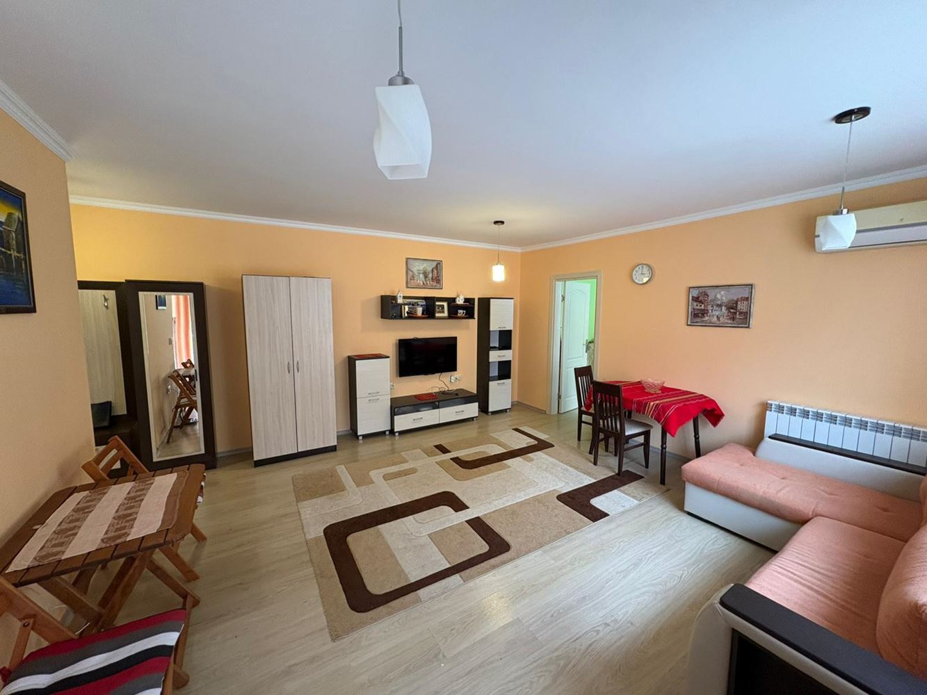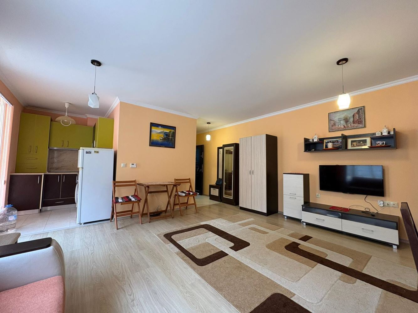 Квартира включает просторную гостиную с кухонным блоком, удобную спальню и ванную комнату с туалетом, а функциональная планировка позволяет удобно и практично использовать каждый квадратный метр. Пространство и естественный свет, заливающий помещения, создают ощущение уютности и спокойствия, а близость к морю добавляет морской шарм и свежесть в повседневную жизнь.