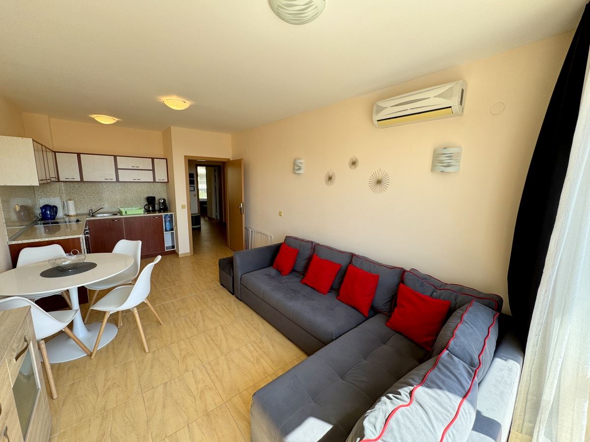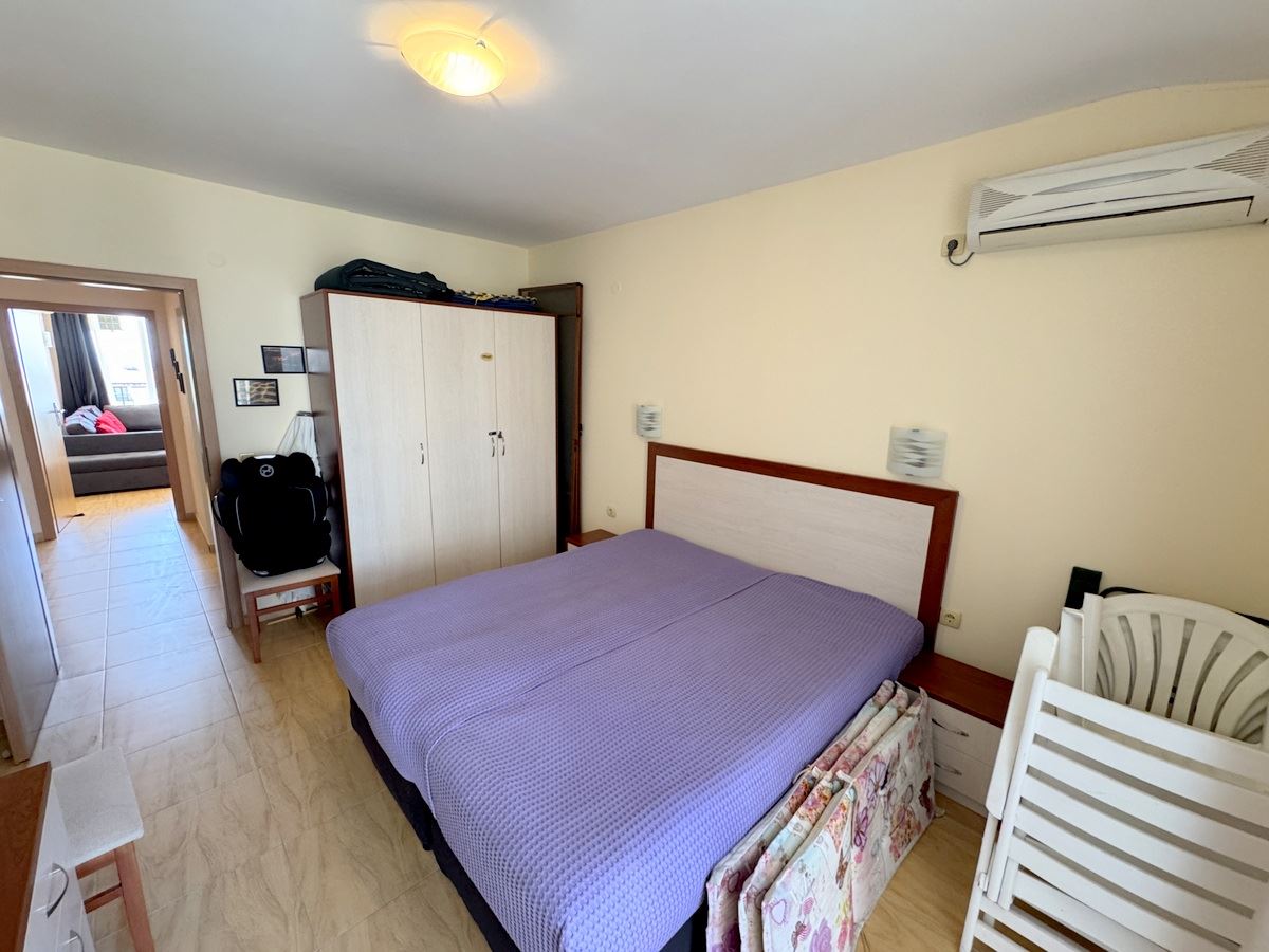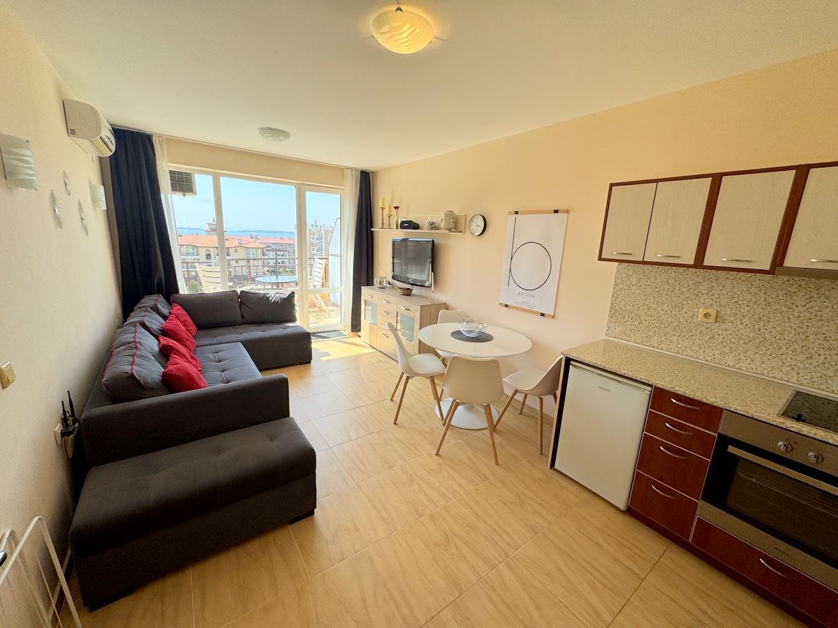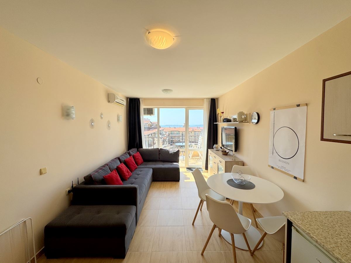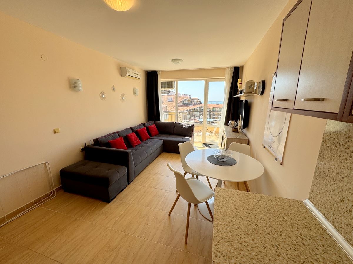Предлагаем вашему вниманию просторную и привлекательную трёхкомнатную квартиру с панорамным видом на море, расположенную в одном из самых востребованных районов Святого Власа. Имущество находится на 4-м этаже элегантного жилого комплекса закрытого типа с лифтом, всего в 100 метрах от золотистого пляжа – идеальное место как для отдыха, так и для круглогодичного проживания. Общая площадь квартиры составляет 98 кв.м и включает: просторную гостиную с местом для кухни и столовой, две отдельные спальни, два санузла и два удобных балкона с красивым видом на море.