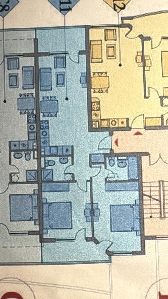 Квартира площадью 98 м2 находится на третьем из четырех этажей и состоит из гостиной с кухней, двух спален, двух ванных комнат и двух террас. С двумя экспозициями. Жилье полностью меблировано и оборудовано.