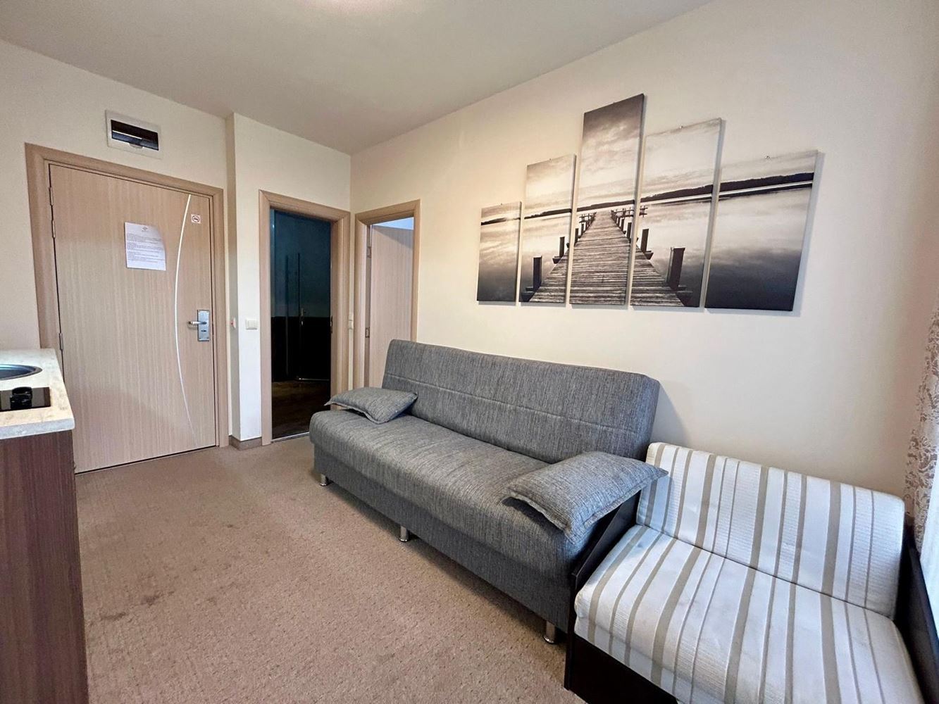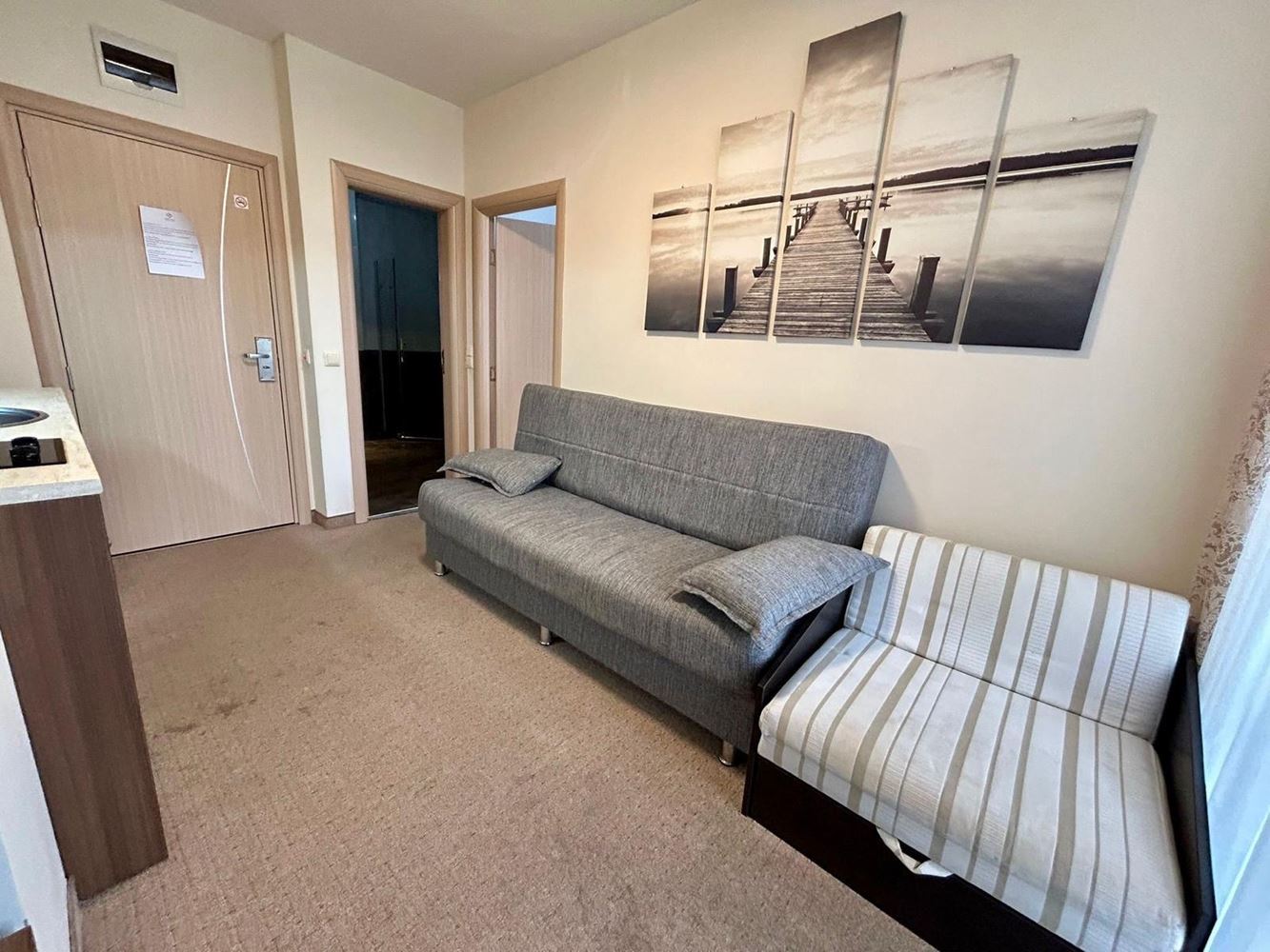 Представляем вашему вниманию исключительно уютную и функциональную двухкомнатную квартиру в закрытом комплексе, расположенном в зелёной и тихой части Солнечного Берега. Площадь жилья составляет 40 м², что делает его идеальным вариантом для круглогодичного проживания, сдачи в аренду или инвестиций. В здании имеется лифт для максимального удобства.