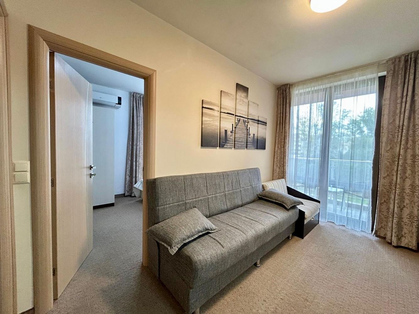 Планировка продумана до мелочей: светлая гостиная с кухней и обеденной зоной, приветливая спальня, современная ванная комната и приятный балкон с видом на зелёные насаждения комплекса – идеальное место для утреннего кофе и отдыха. Квартира продаётся полностью меблированной и оснащённой бытовой техникой, в отличном состоянии – готова к немедленному использованию без дополнительных вложений.