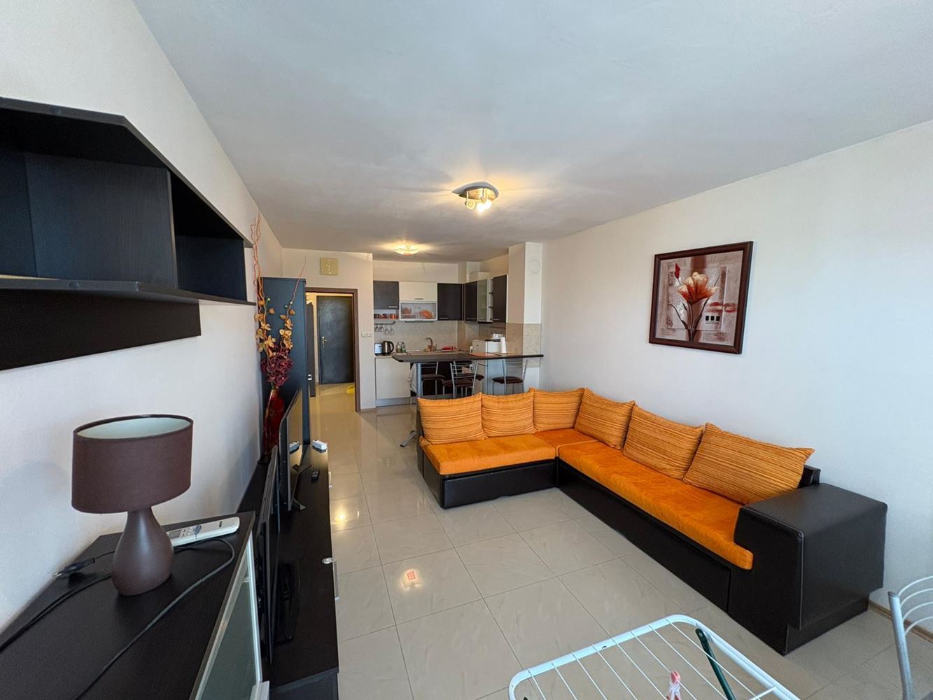 Основные характеристики: двухкомнатная квартира, 68 м², 4-й этаж из 5, западная ориентация, один балкон, одна спальня, одна ванная с туалетом, кладовая, лифт, полностью меблирована, 400 м до моря.